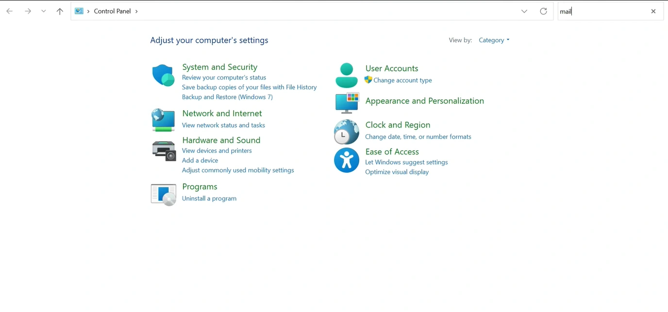 3. At the top right corner, type “mail” in the search field.